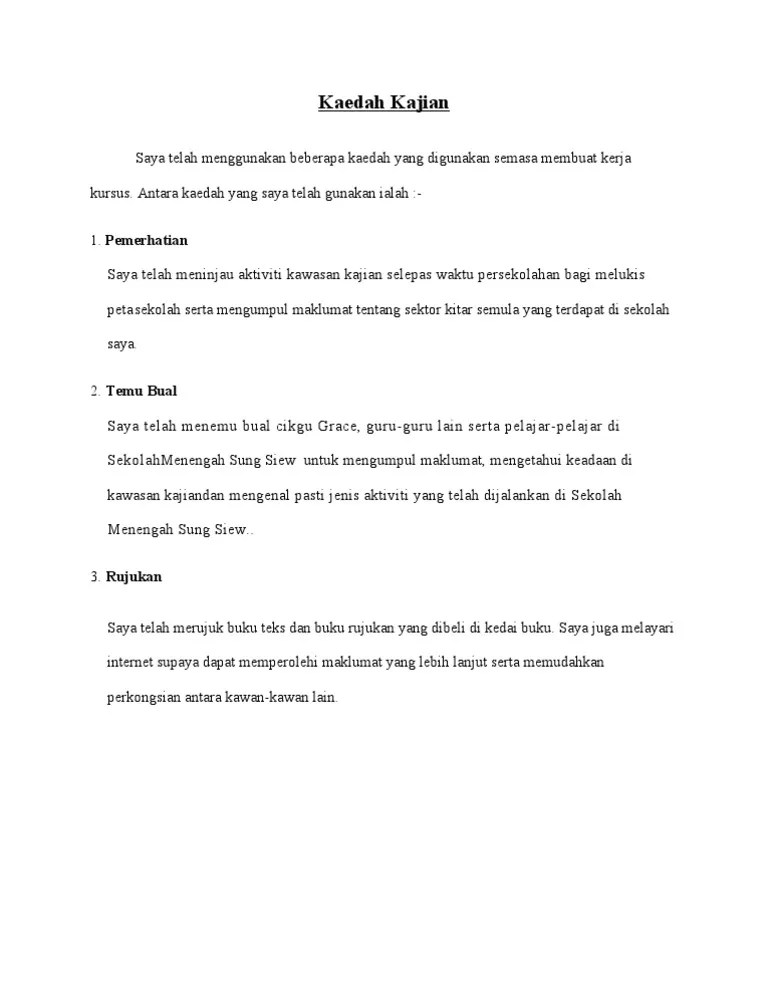 Contoh kaedah kajian kerja lapangan tugasan geografi tingkatan 3 .